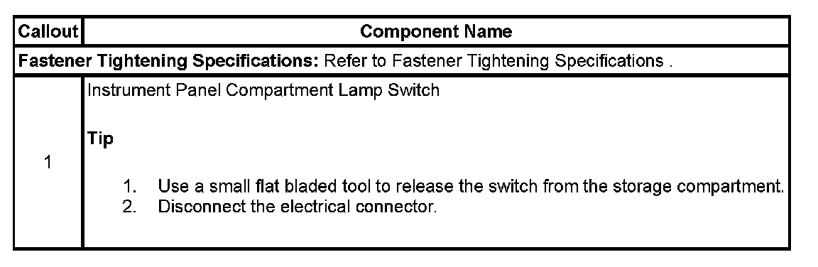 INSTRUMENT PANEL (I/P) COMPARTMENT LAMP SWITCH REPLACEMENT