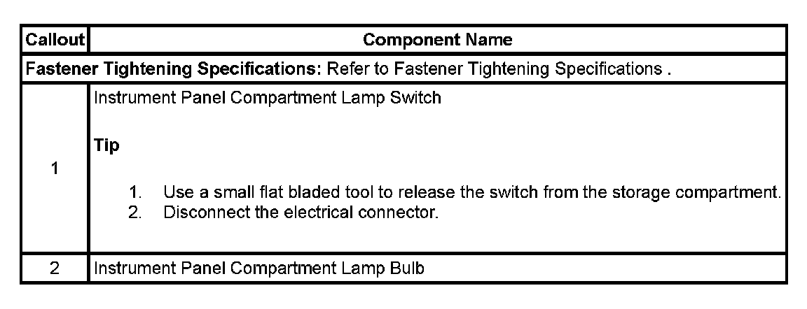 INSTRUMENT PANEL (I/P) STORAGE COMPARTMENT LAMP REPLACEMENT