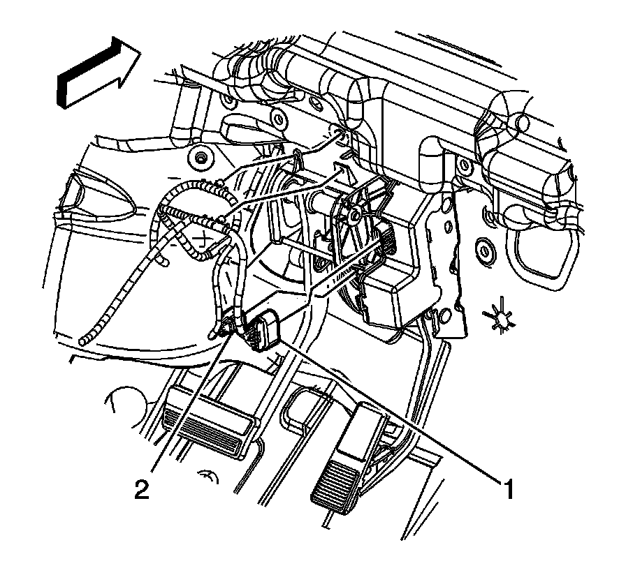 2. Disconnect the body harness electrical connector (1) from the accelerator pedal position (APP) sensor.
