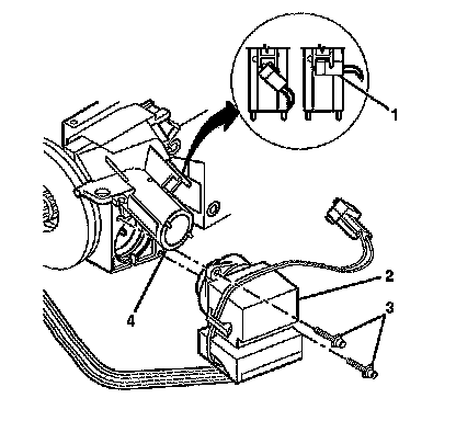 4. Install the theft deterrent module (2) to the ignition lock cylinder case (1).