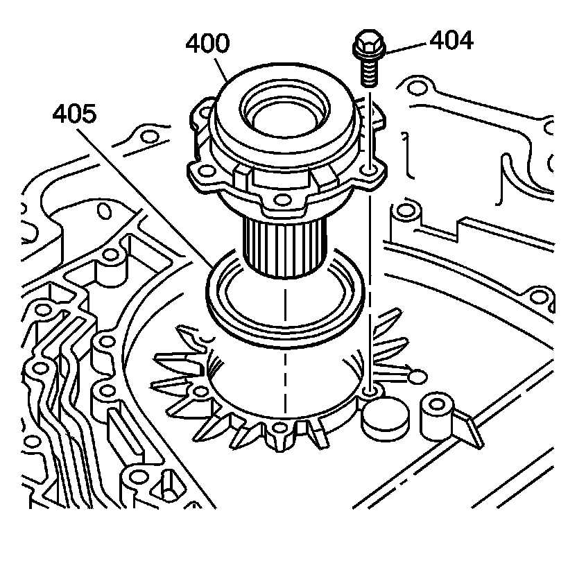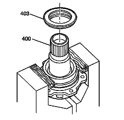4. Place the drive sprocket support (400) in a soft jaw vise. Use a wedge-shaped chisel in order to remove the converter helix seal (403).