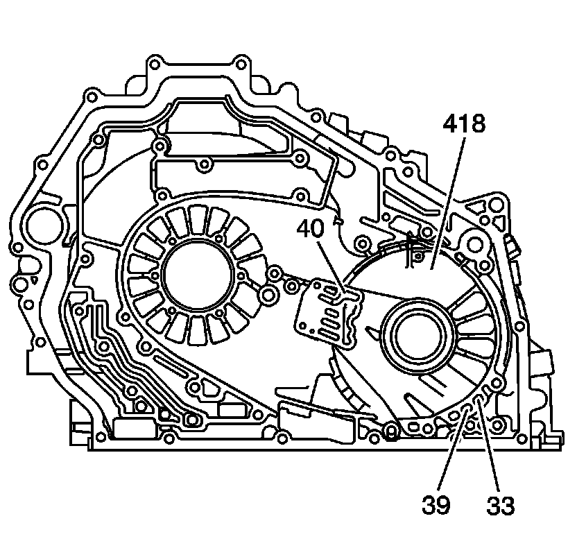 With the 2nd clutch (430), reverse clutch (505) and 3rd clutch (606) installed in the case, apply 50-60 psi of filtered compressed shop air to the appropriate passages located in the driven sprocket support (418), passage 39 for the 2nd clutch, passage 40 for the 3rd clutch and passage 33 for the reverse clutch. If the clutches are assembled properly and sealing, you should be able to hear them apply and release.