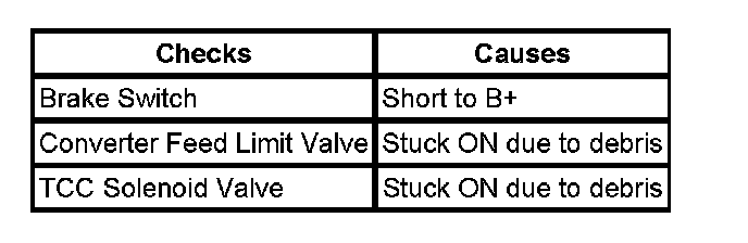 Torque Converter Clutch (TCC) Not Disengaging: