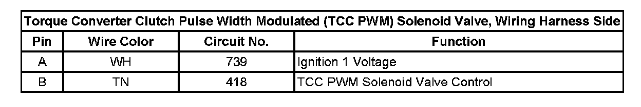 Torque Converter Clutch Pulse Width Modulated (TCC PWM) Solenoid Valve, Wiring Harness Side