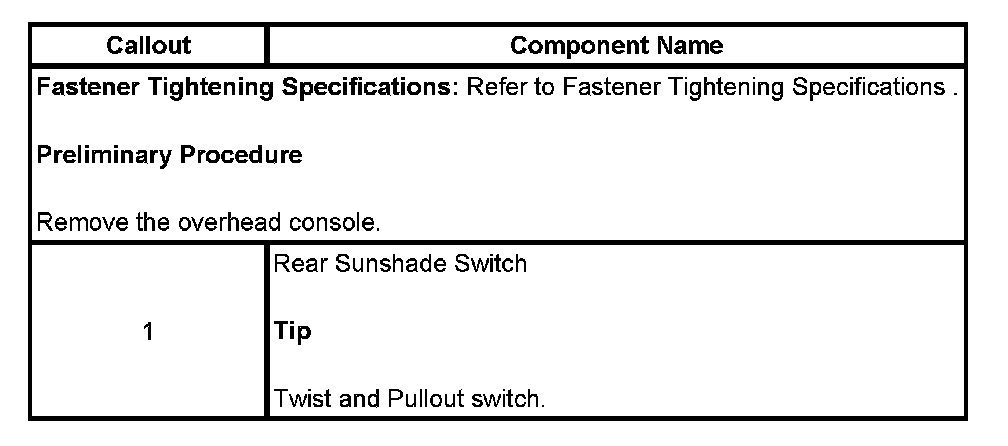 SUNSHADE SWITCH REPLACEMENT - REAR