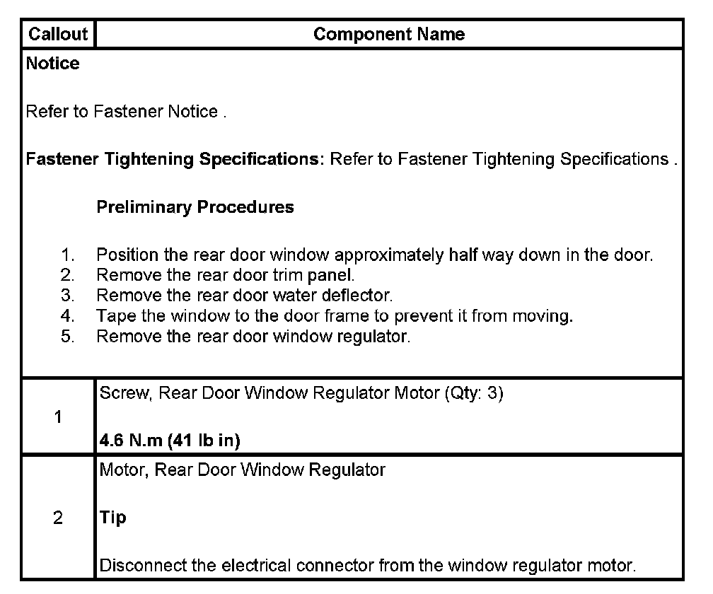 WINDOW REGULATOR MOTOR REPLACEMENT - REAR DOOR
