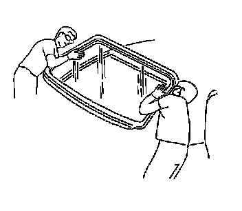 6. Install the rear window into the opening. Refer to Urethane Adhesive Installation of Stationary Windows (Urethane Adhesive Installation of Stationary Windows) .