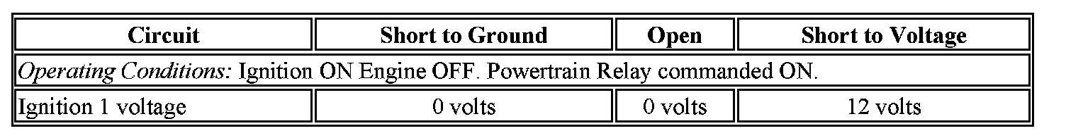 2. Ignition ON, engine OFF, observe the Ignition 1 voltage signal, and the EC Ignition Relay Feedback signal parameters, on the scan tool. Both parameter values should display no more than 3 volts difference, between the 2 parameters.