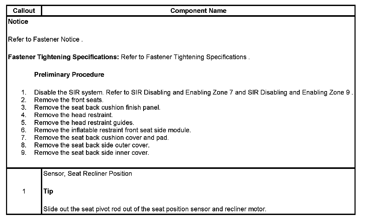 POWER RECLINER SENSOR REPLACEMENT - FRONT