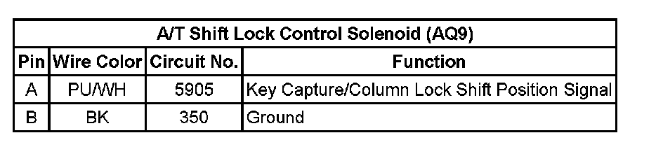 A/T Shift Lock Control Solenoid (AQ9):