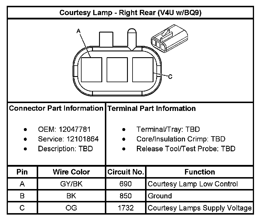 Courtesy Lamp - Right Rear (With RPO Code V4U/BQ9):