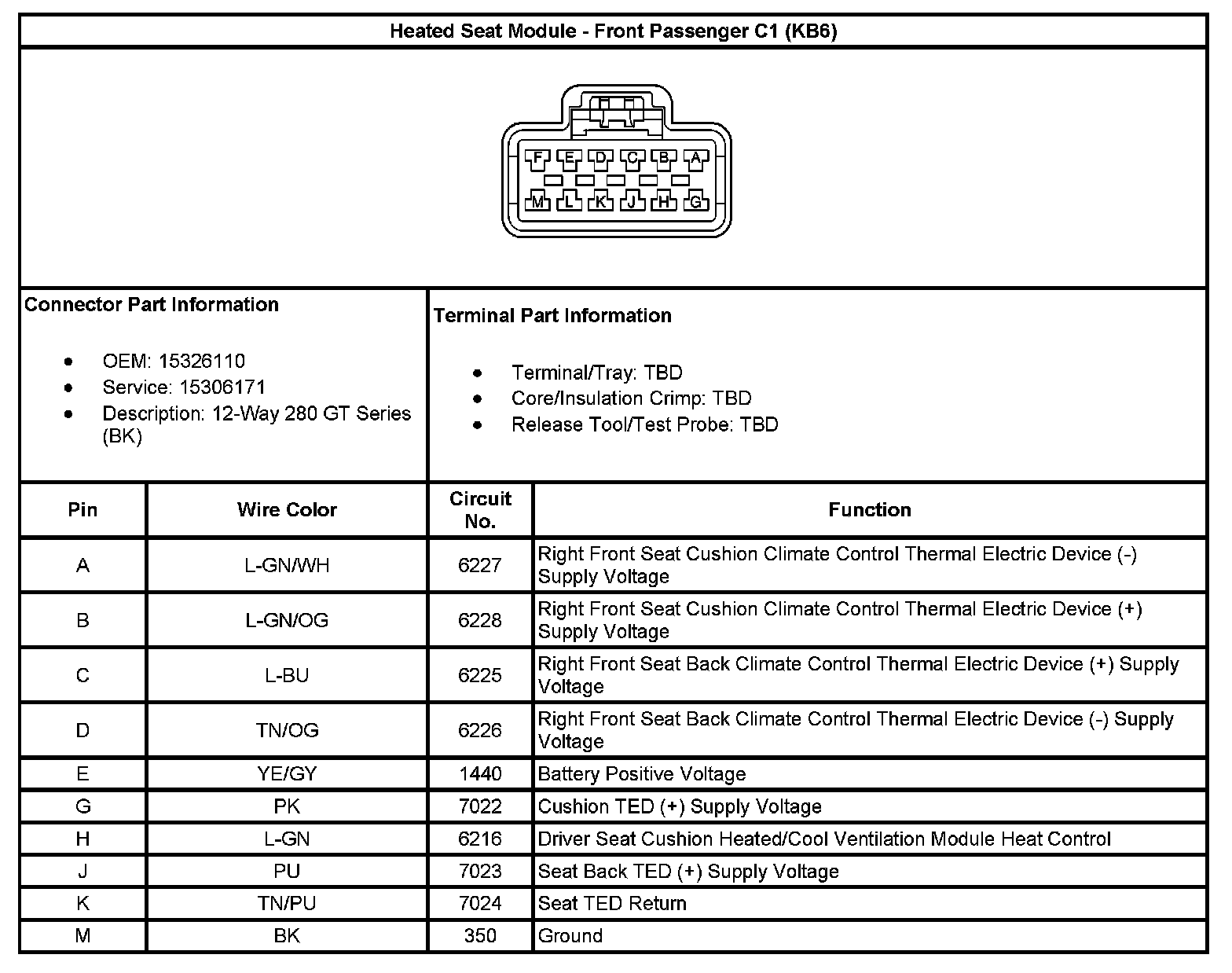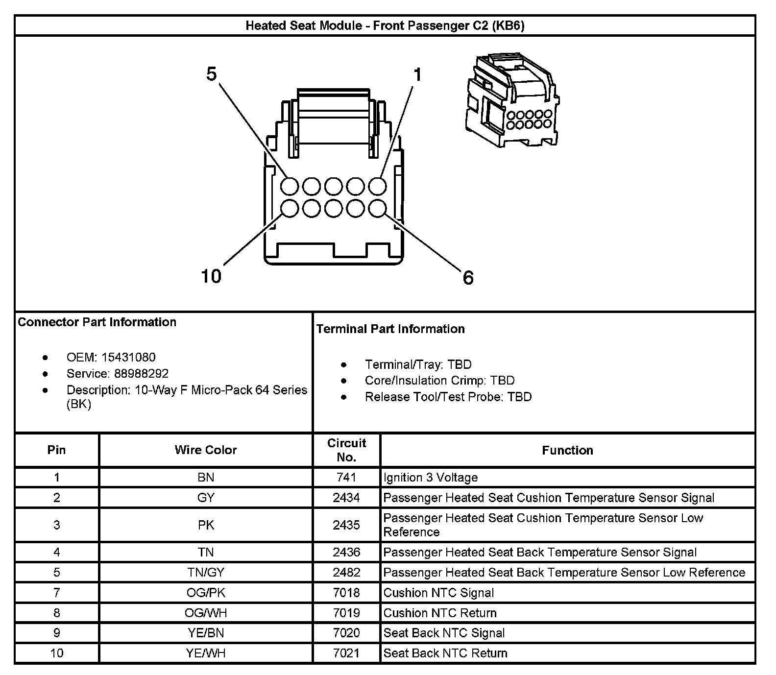 Heated Seat Module - Front Passenger C2 (With RPO Code KB6):