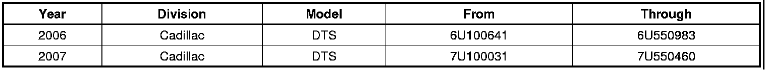 Involved are certain 2006-2007 model year Cadillac DTS limousine and livery vehicles built within these VIN breakpoints: