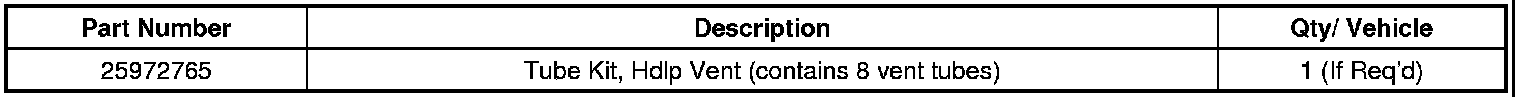 Headlamp Vent Tube Kit (Service Cap) P/N 25972765