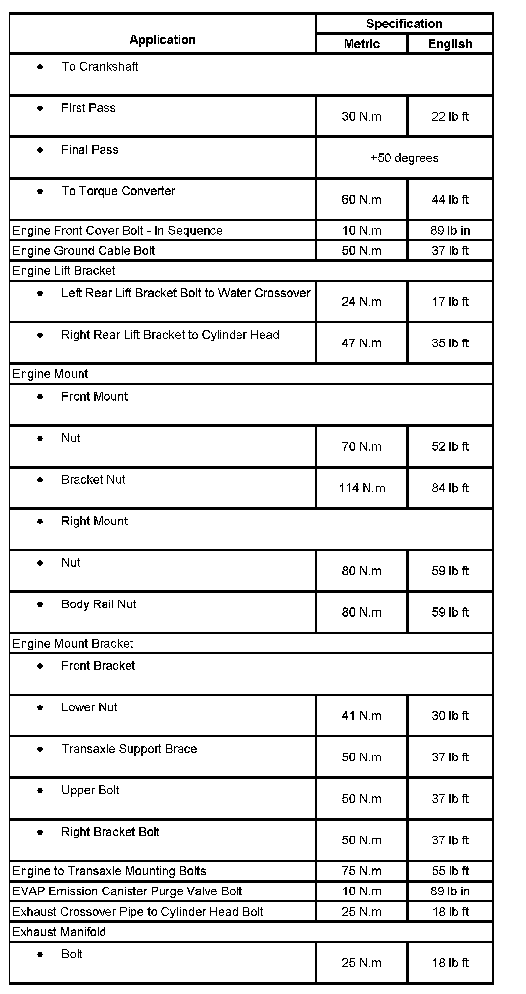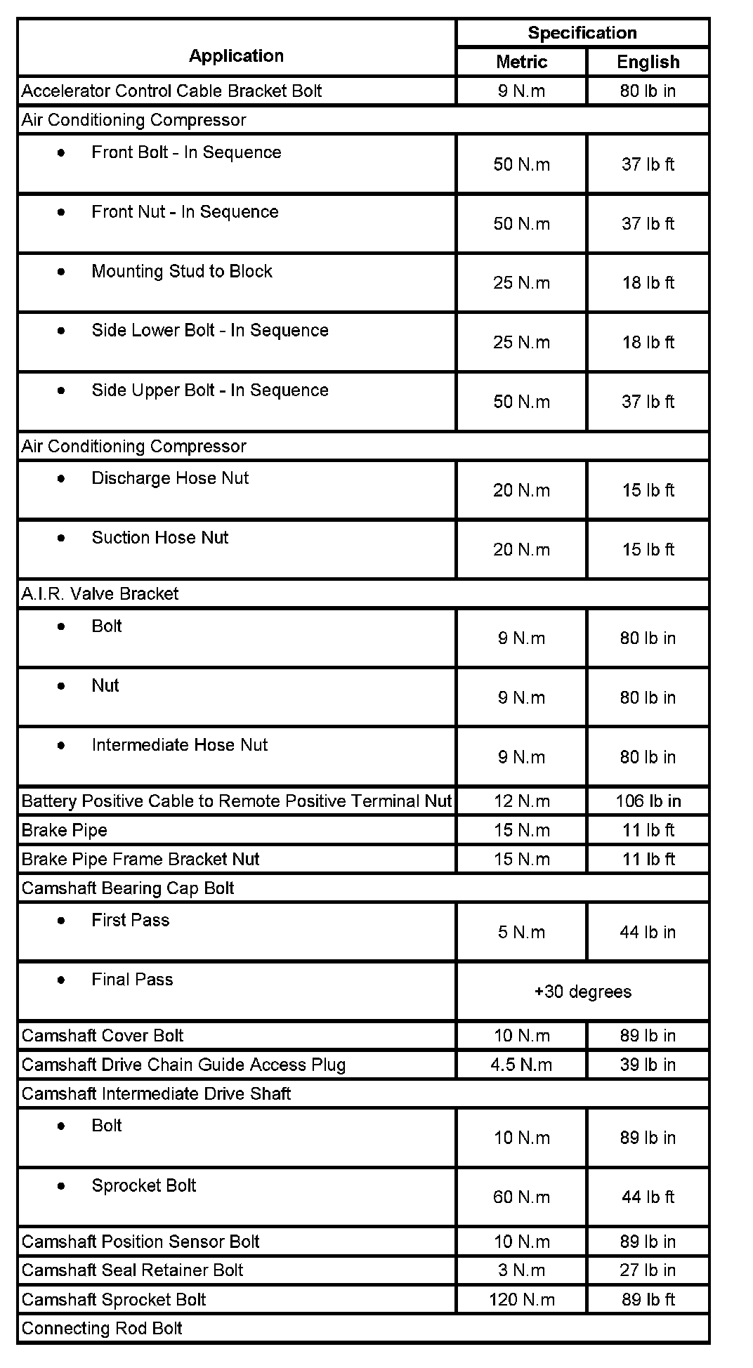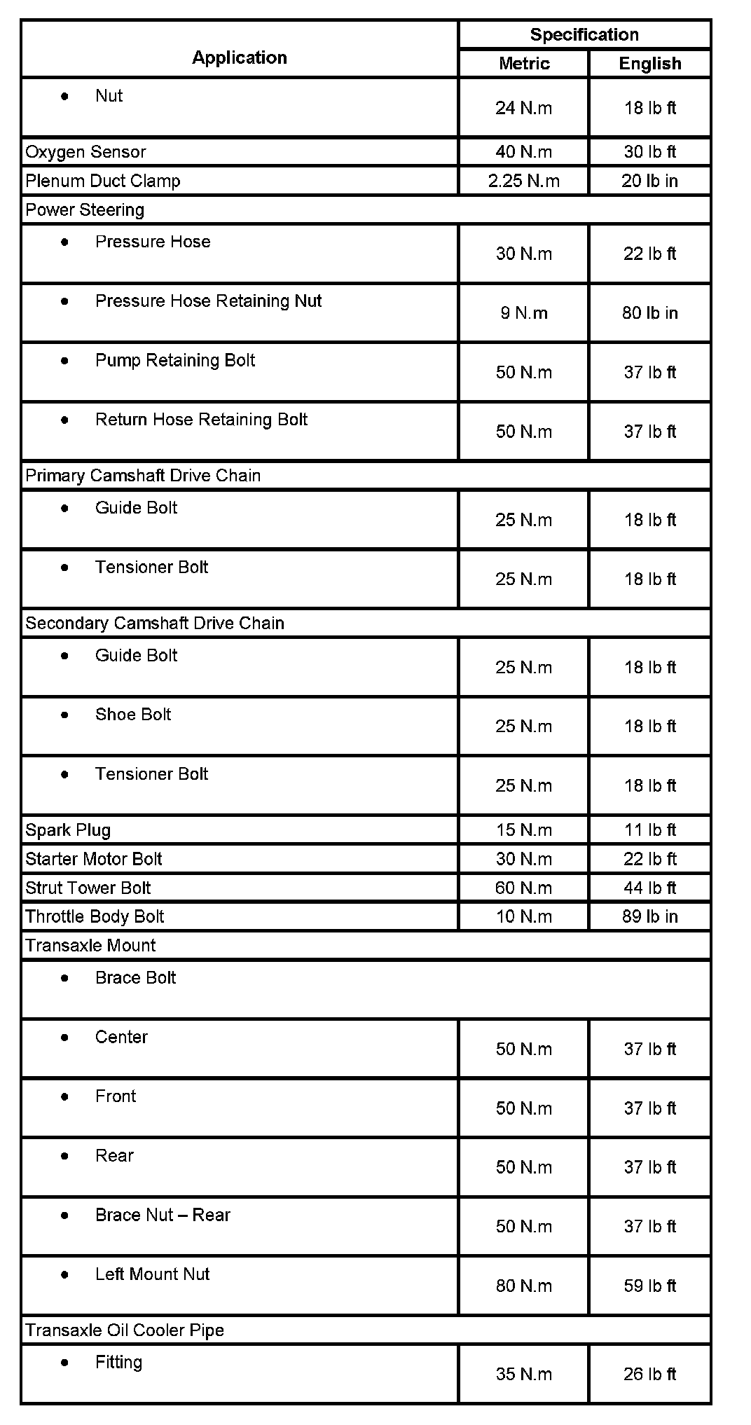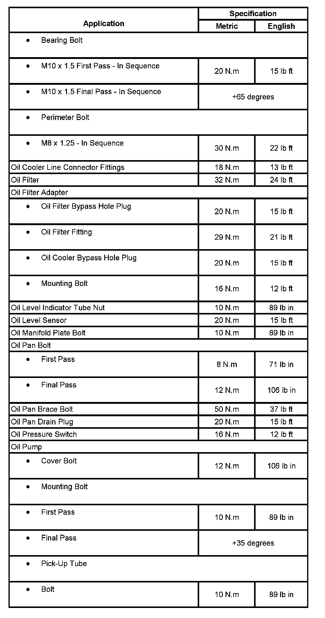 Fastener Tightening Specifications: