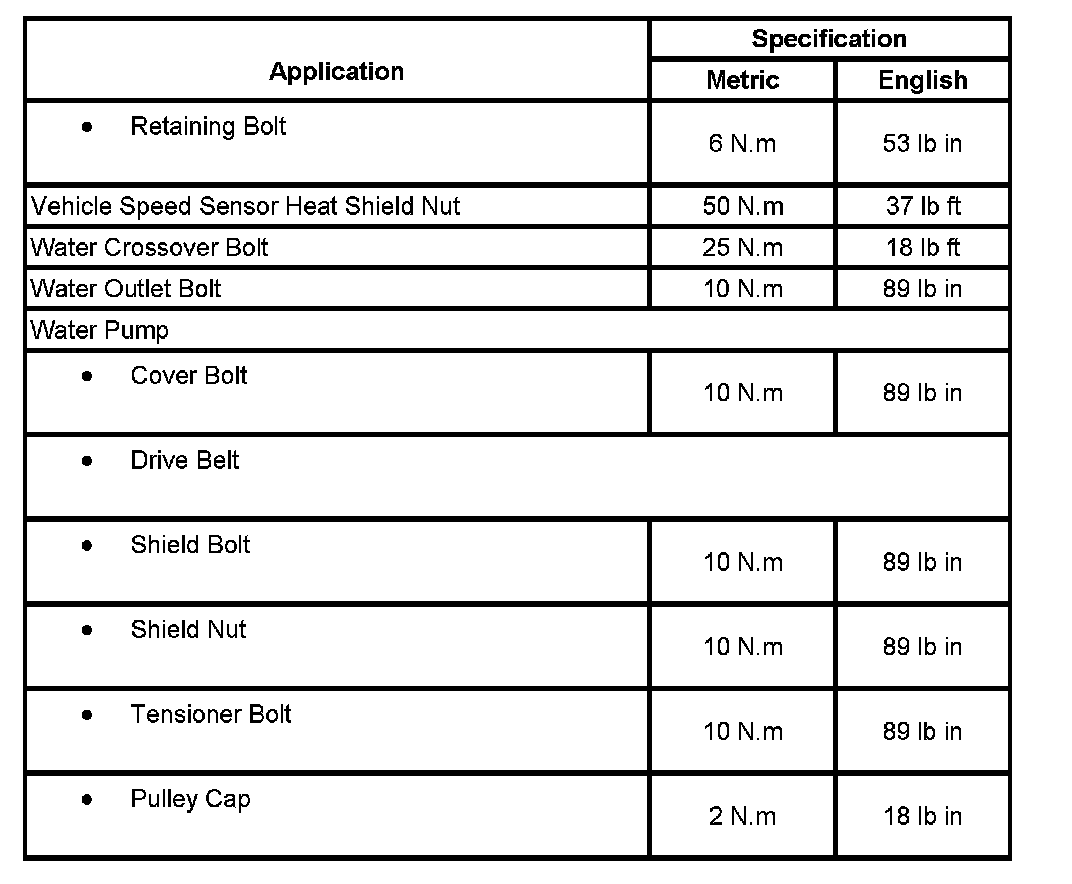 Fastener Tightening Specifications Fastener Tightening Specifications: