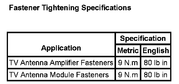 Fastener Tightening Specifications:
