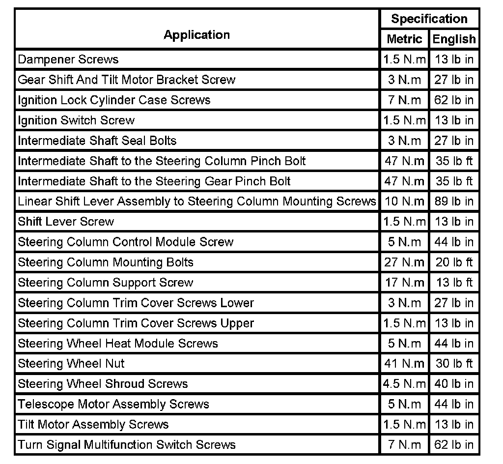Fastener Tightening Specifications: