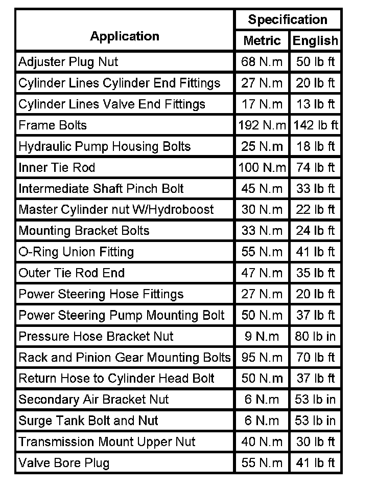 Fastener Tightening Specifications: