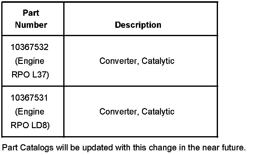 The catalytic converter is now available for service as a separate part. The catalytic converter was formerly available only as part of the complete exhaust system. DO NOT replace the complete exhaust system if only the catalytic converter requires replacement. Refer to Catalytic Converter Replacement in SI.
