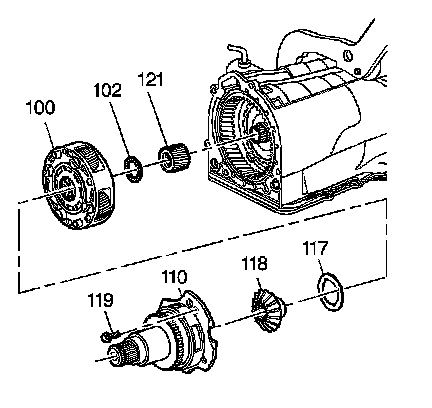 1. Locate the dowels on the final drive carrier (100) and insert these dowels into the holes in the differential carrier (110) for proper assembly.