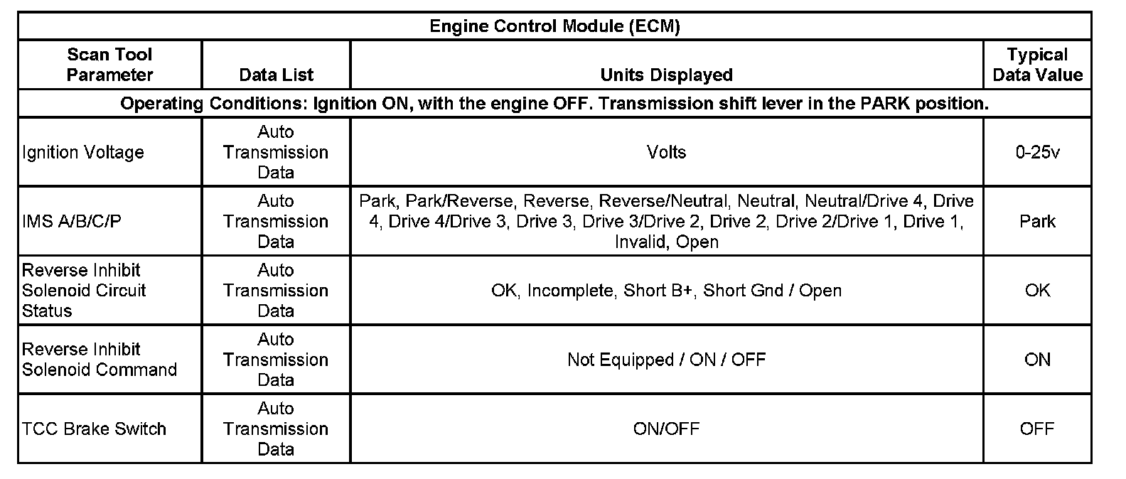 Scan Tool Data List: