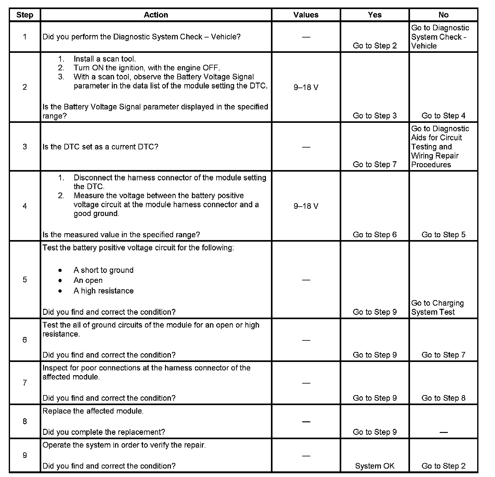 The control modules on this vehicle monitor the battery voltage through the battery positive voltage circuits. This vehicle has multiple modules that will set this DTC. For more information on which modules, Refer to Diagnostic Trouble Code (DTC) List - Vehicle. Diagnostic Trouble Code Descriptions