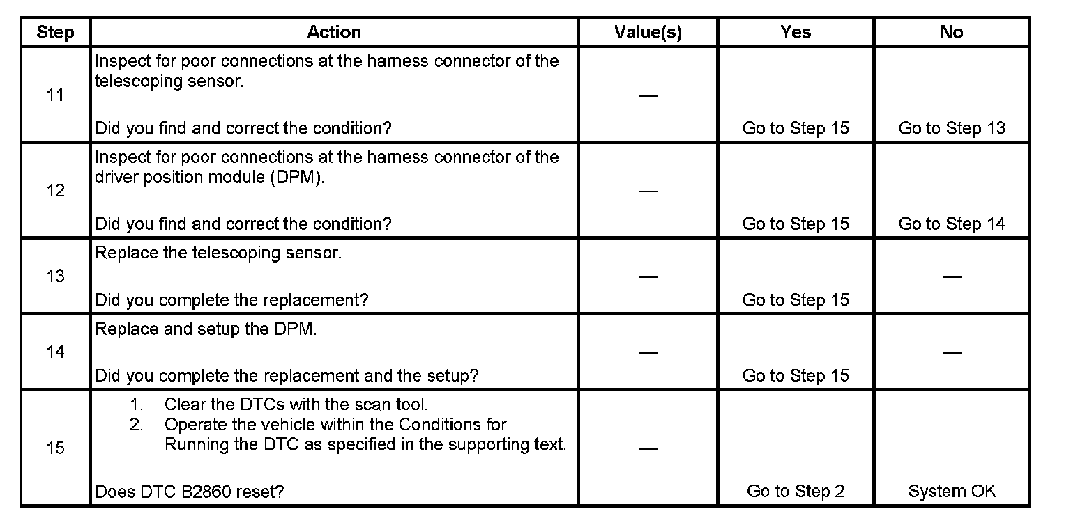 ^ If the DPM is unable to determine the correct steering column position, limited manual operation of the telescoping steering column will be functional, but the DPM will be unable to recall the correct memory settings.
