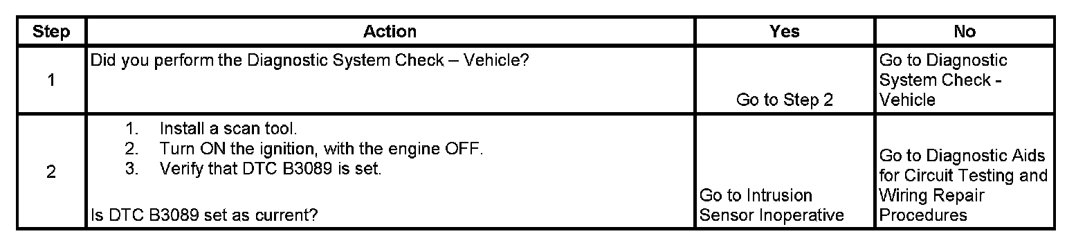 DTC B3089 Content Theft System Intrusion Sensor Signal Circuit
