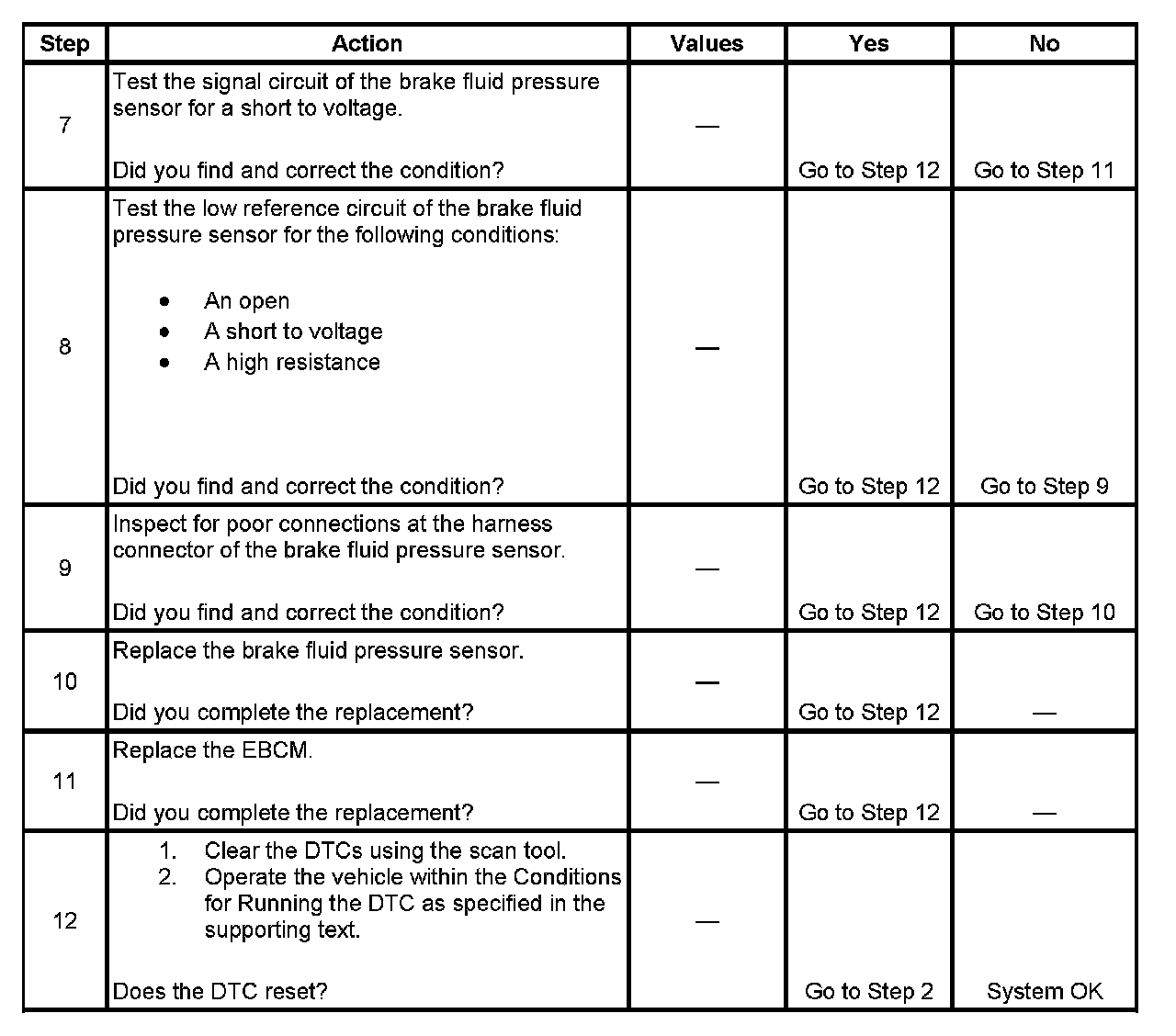 8. Tests for a problem with the low reference circuit. If a short to voltage exists, other DTC's may be set for the vehicle stability system if equipped.