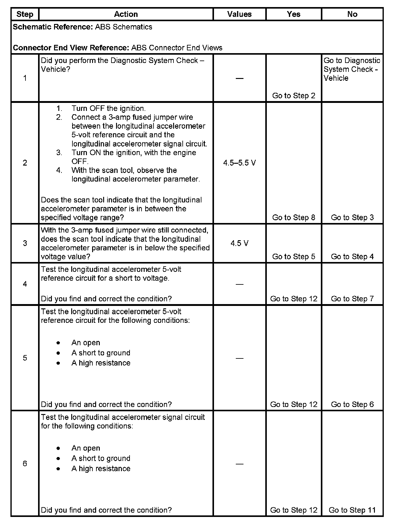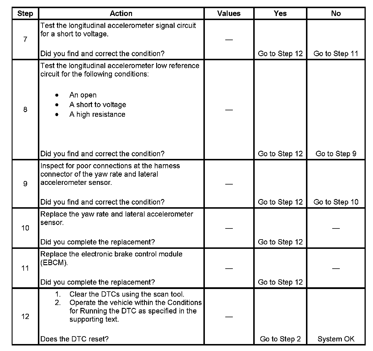 8. This step tests for a problem with the low reference circuit. If a short to voltage exists, other DTC's may be set for the vehicle stability system if equipped.