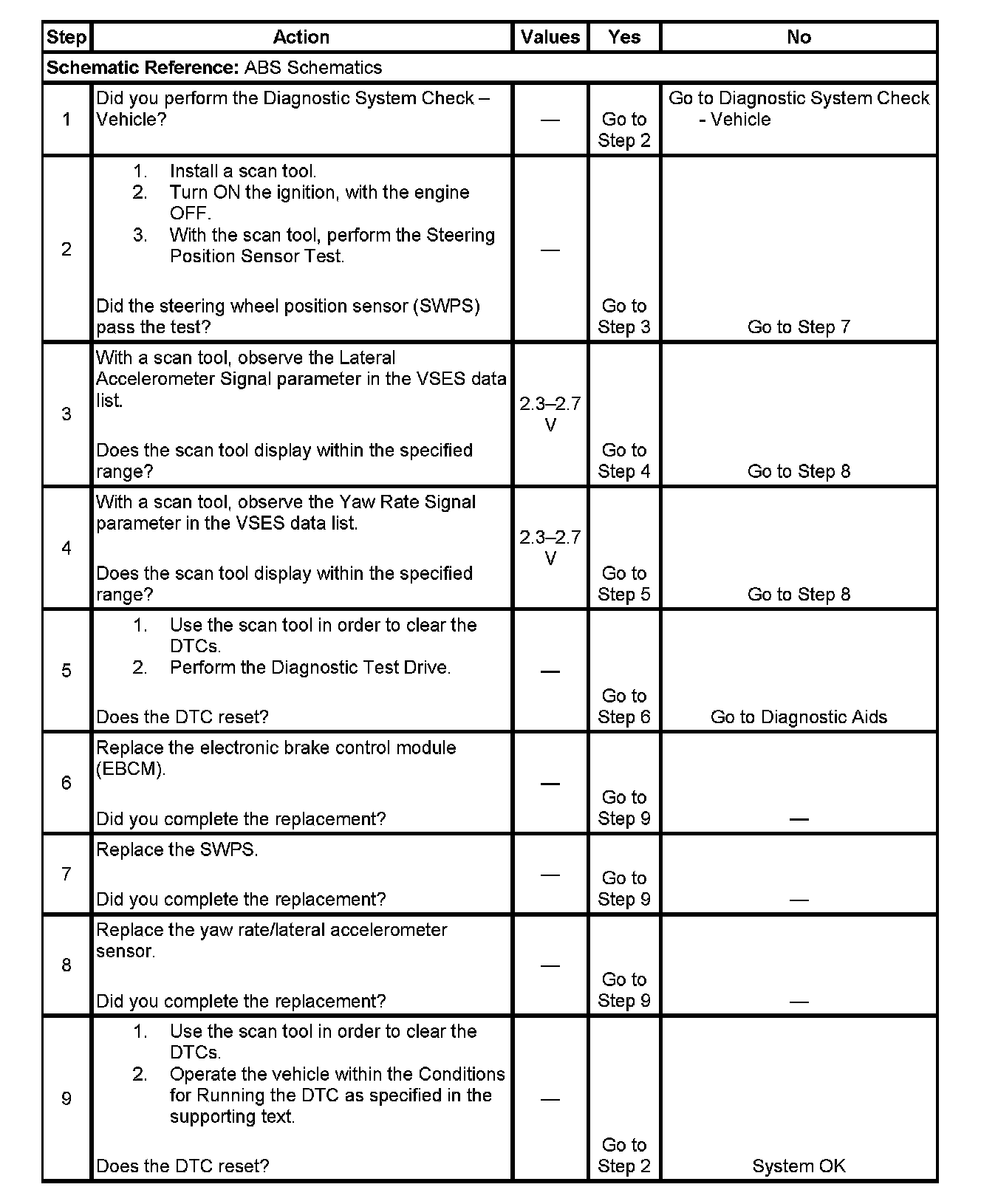 2. Perform the Steering Position Sensor Test in order to verify that the steering wheel position sensor (SWPS) is operating properly.