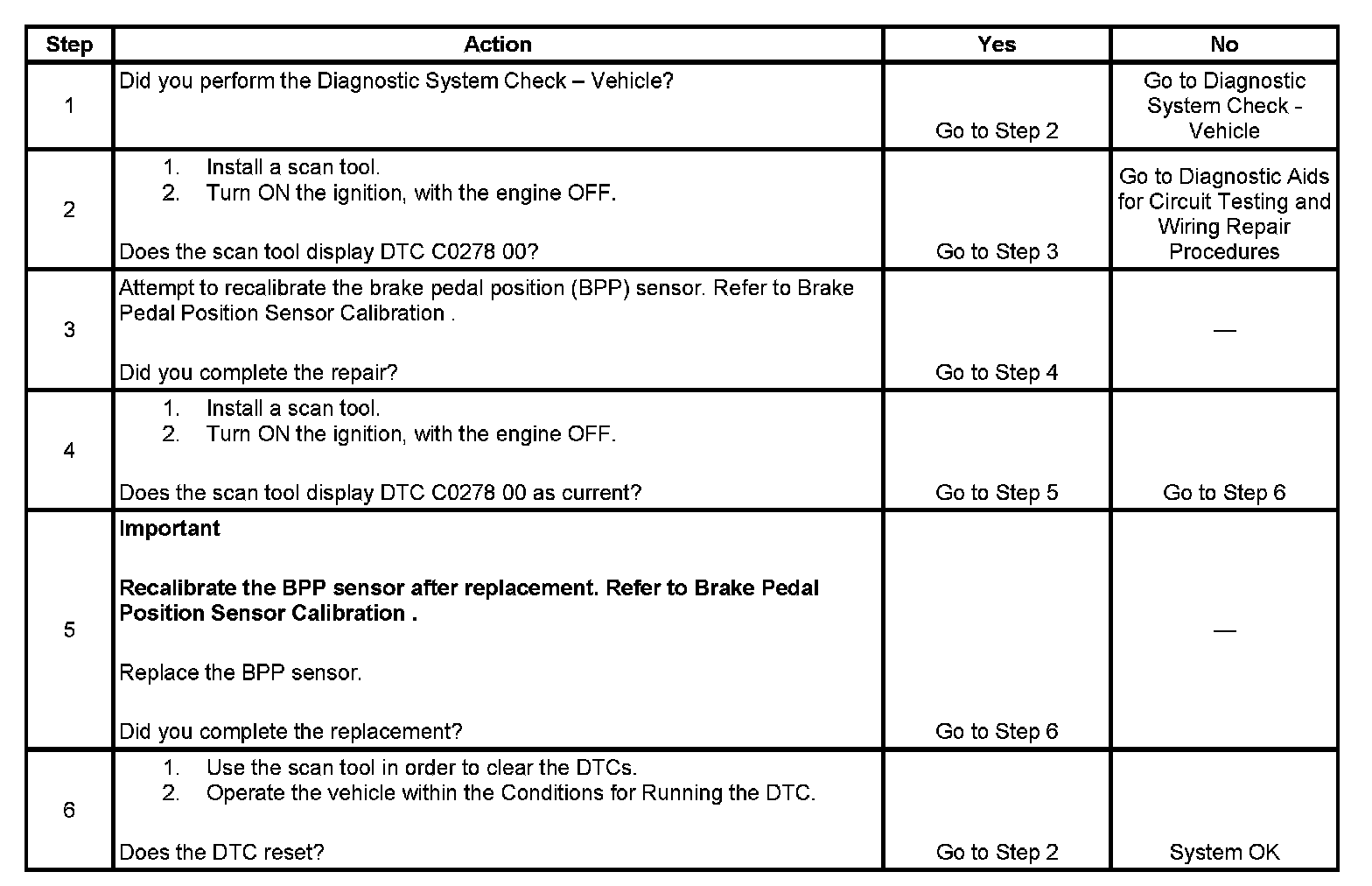 DTC C0278 Brake Pedal Position Sensor Not Calibrated