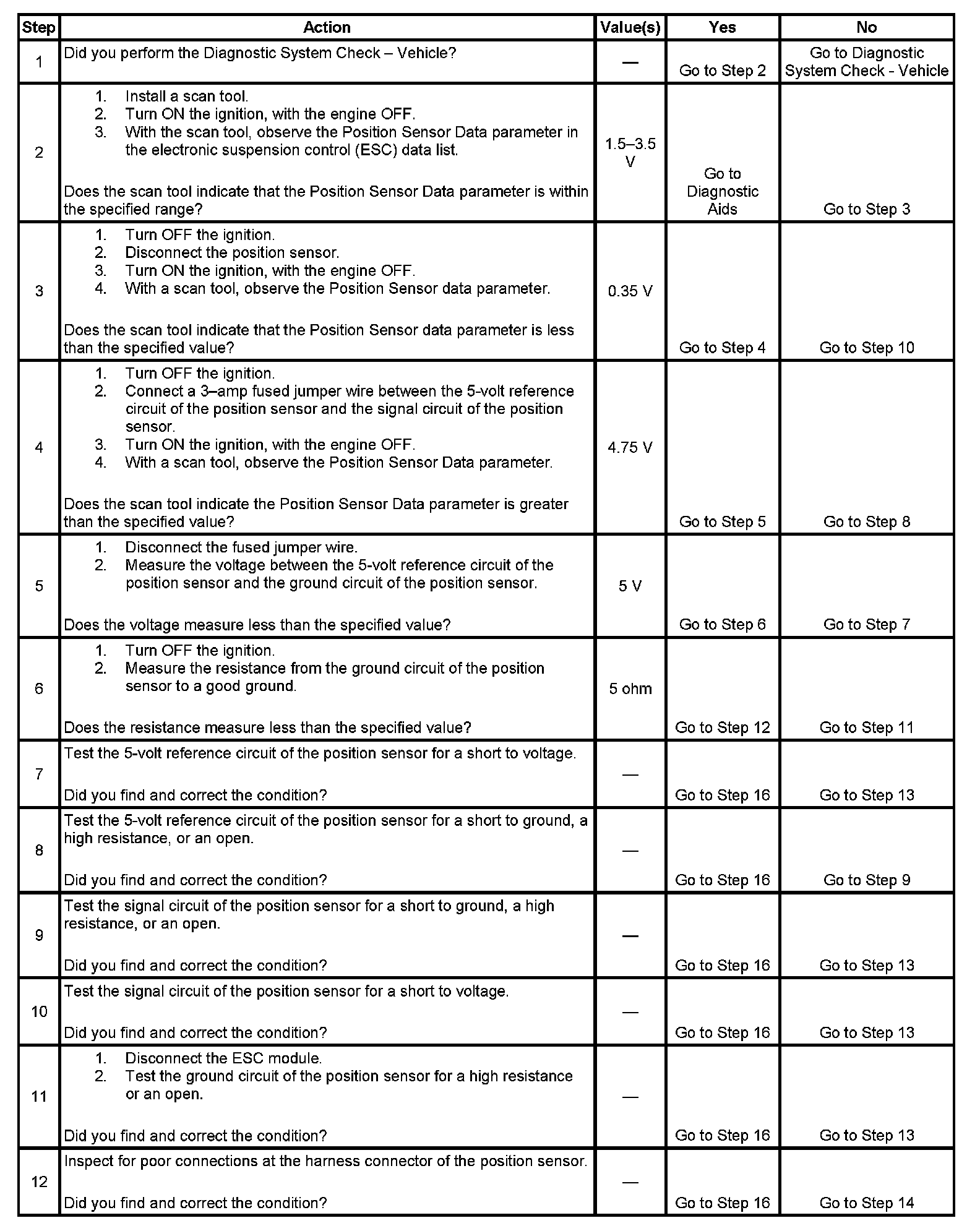 11. This step tests for an open or high resistance in the position sensor ground circuit.