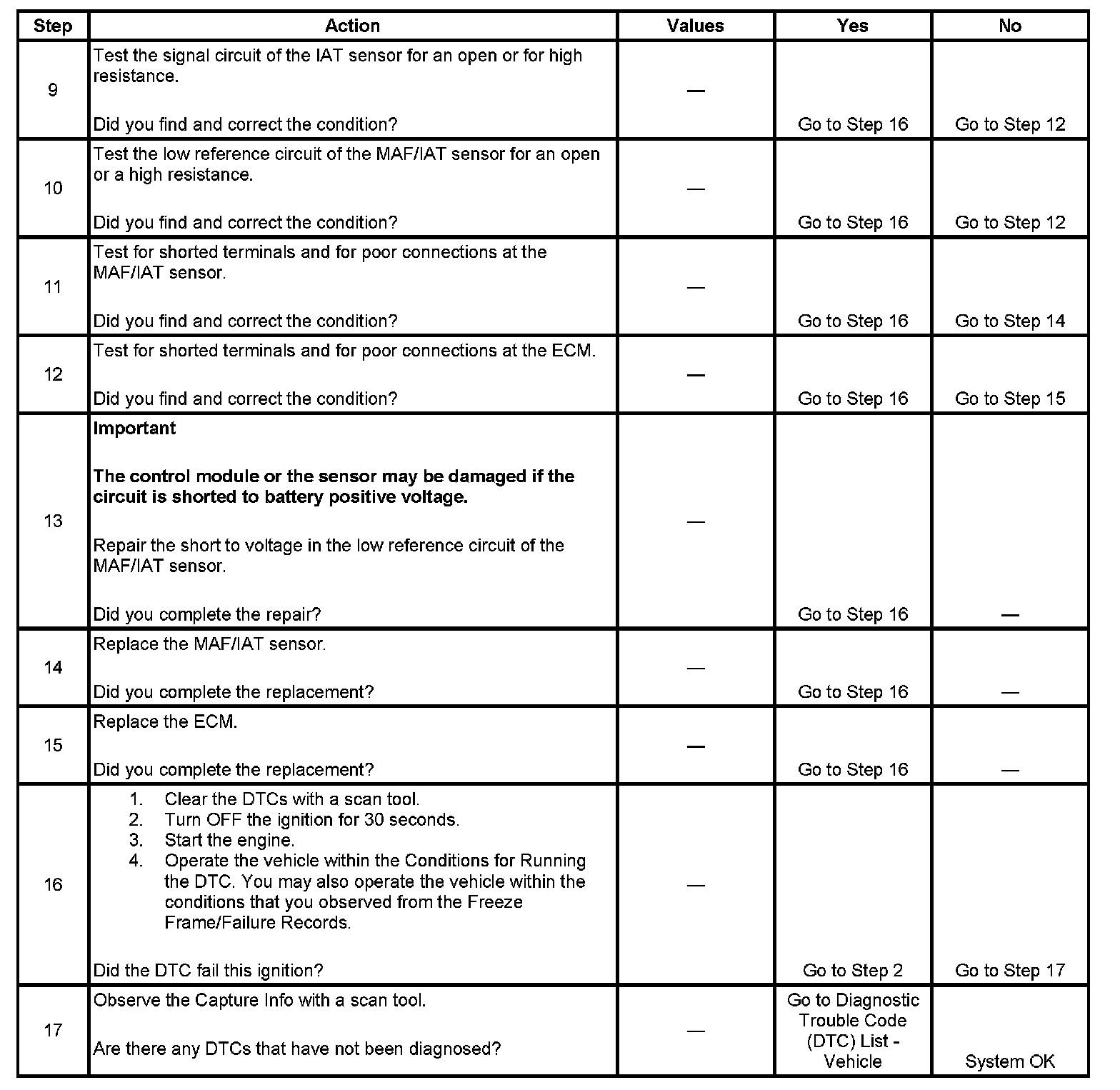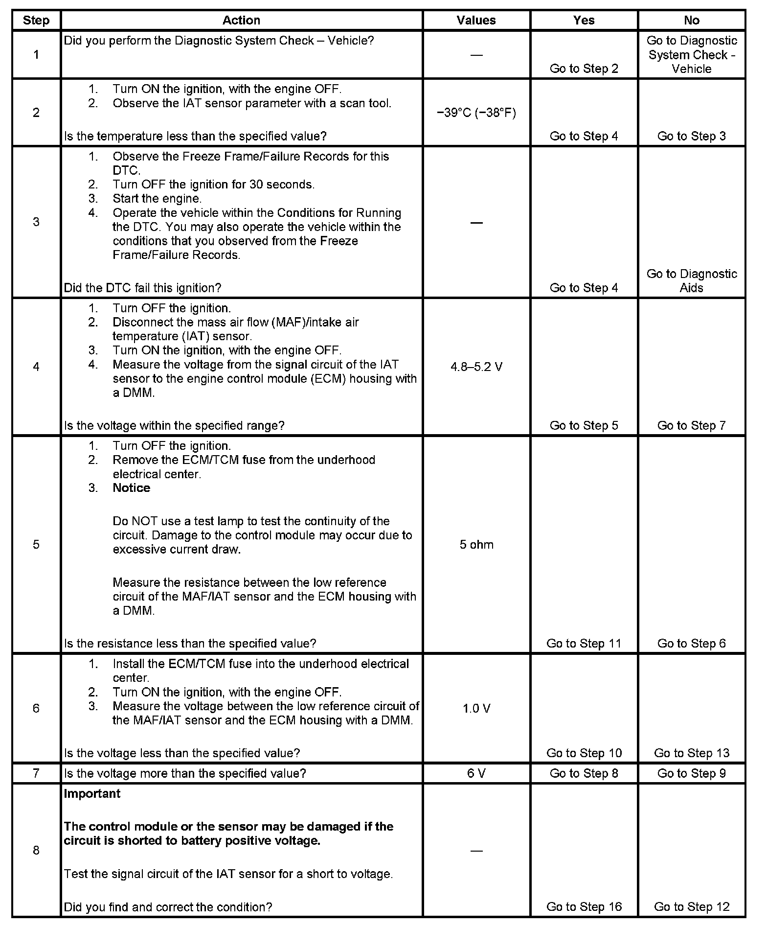 2. This step determines that a condition exists. If the temperature is less than the specified value, test for a condition in the circuits of the IAT sensor.