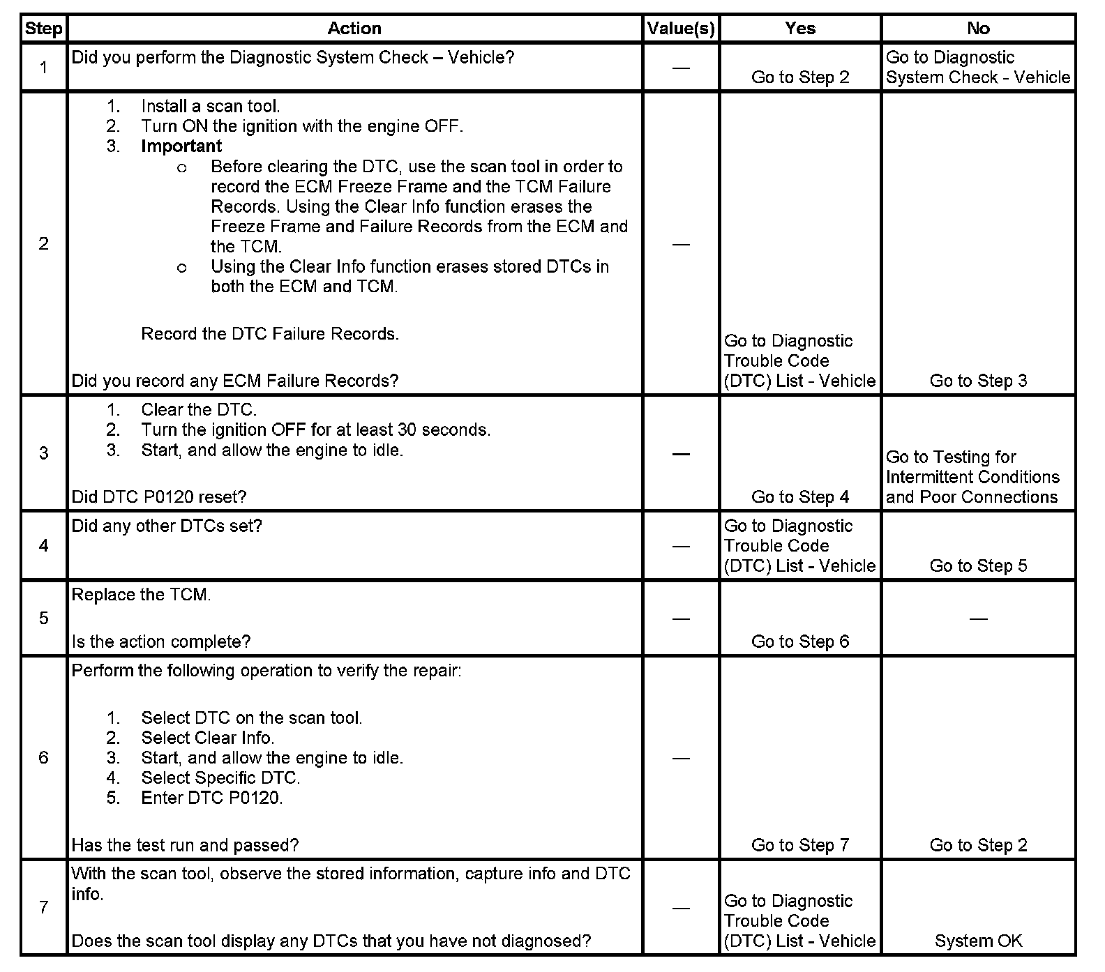 When the TCM receives invalid throttle position data from the ECM, then DTC P0120 will set. DTC P0120 is a type B DTC.