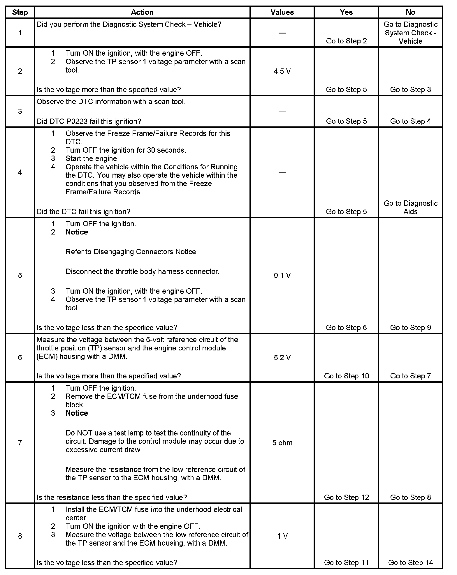 DTC P0123 Throttle Position (TP) Sensor 1 Circuit High Voltage