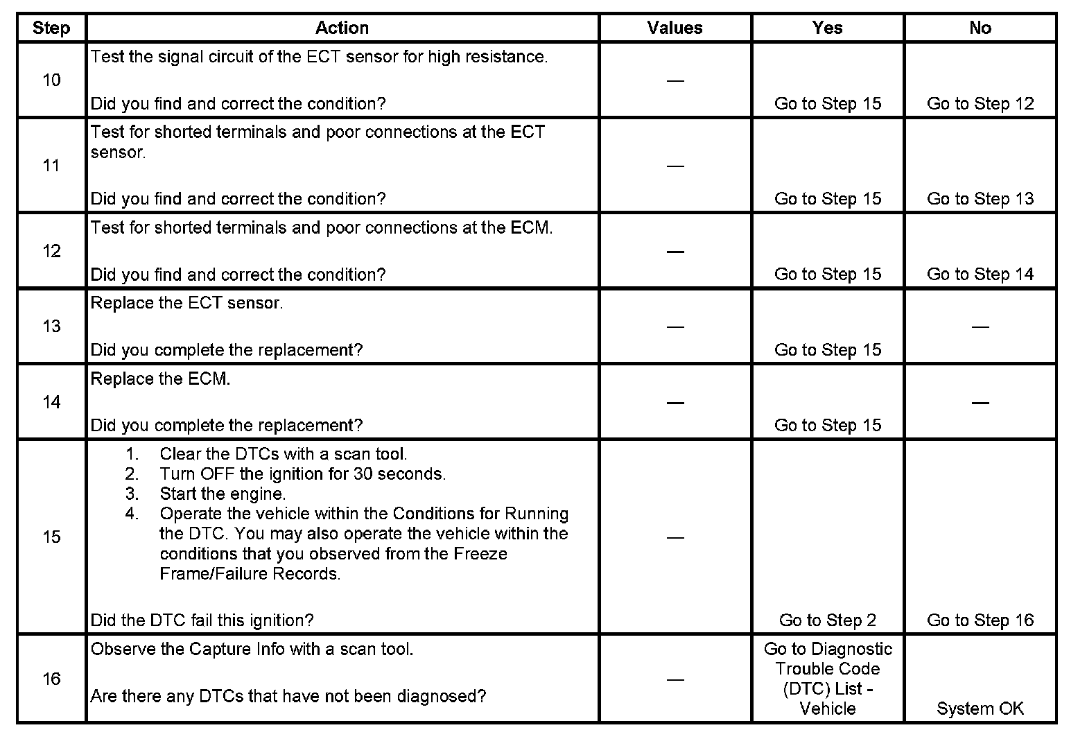 - The ECM detects that the actual coolant temperature is 10°C (18°F) less than the calculated coolant temperature.