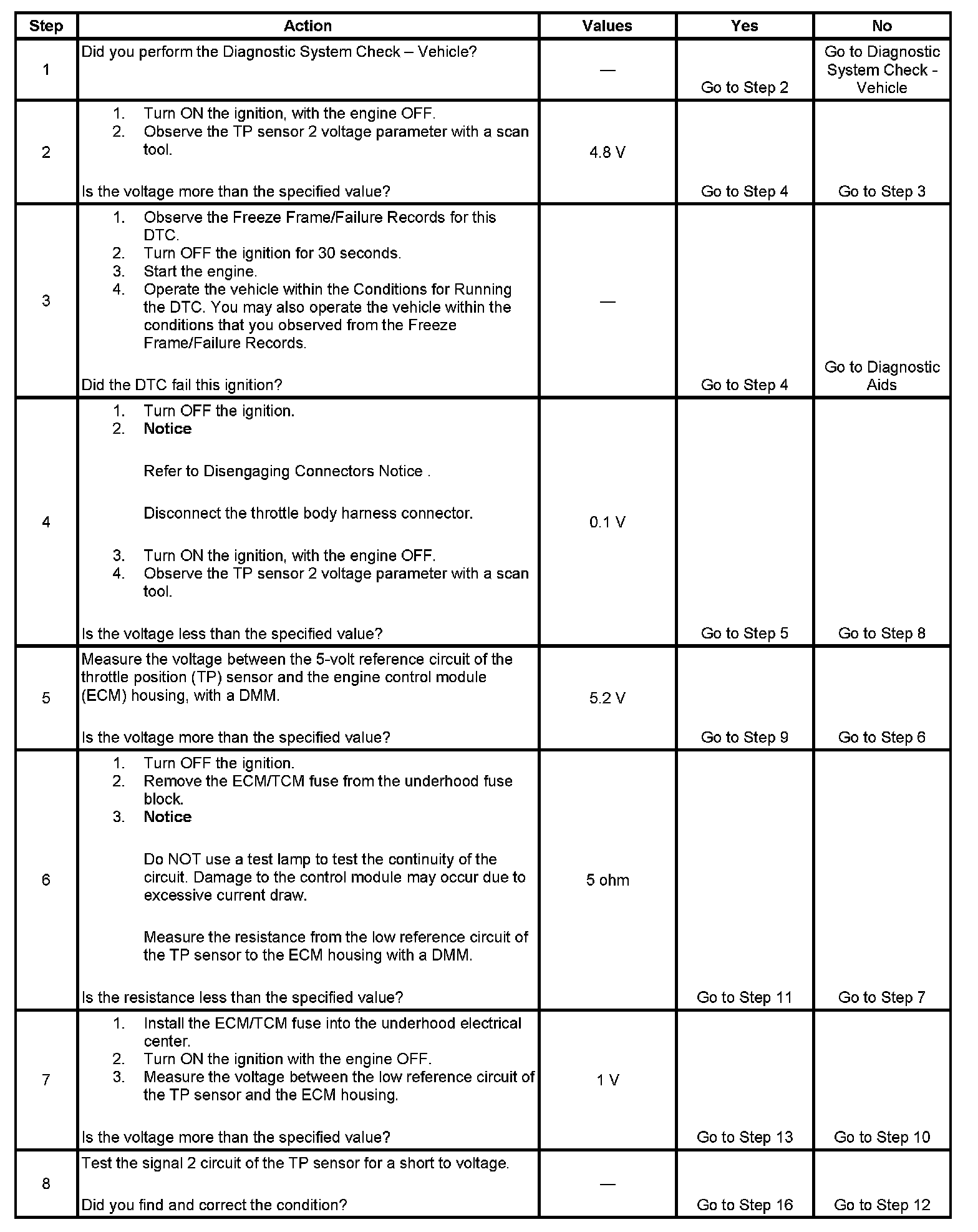 DTC P0223 Throttle Position (TP) Sensor 2 Circuit High Voltage