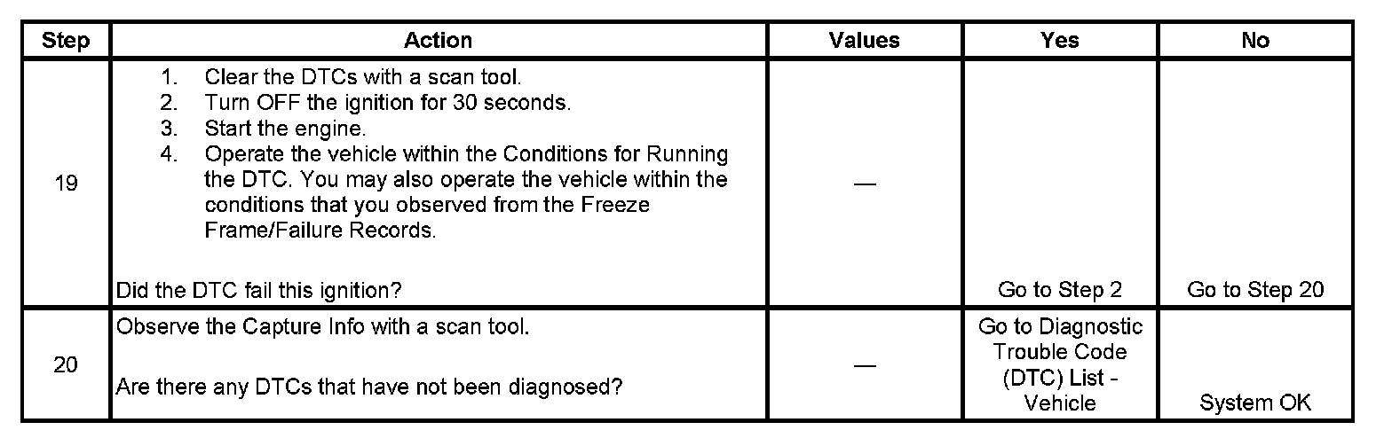 - A current DTC, Last Test Failed, clears when the diagnostic runs and passes.