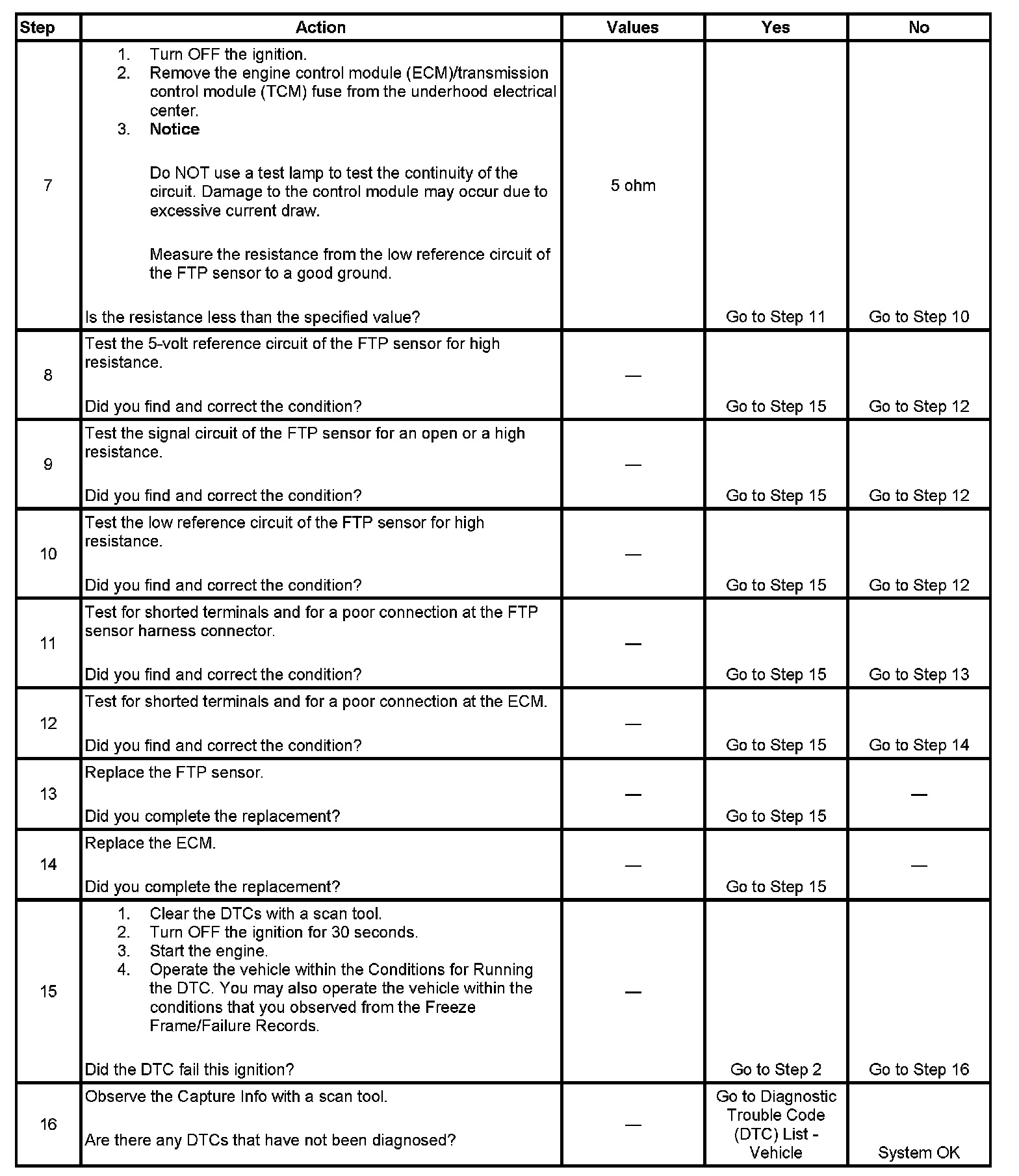 6. This step tests the signal circuit of the FTP sensor.