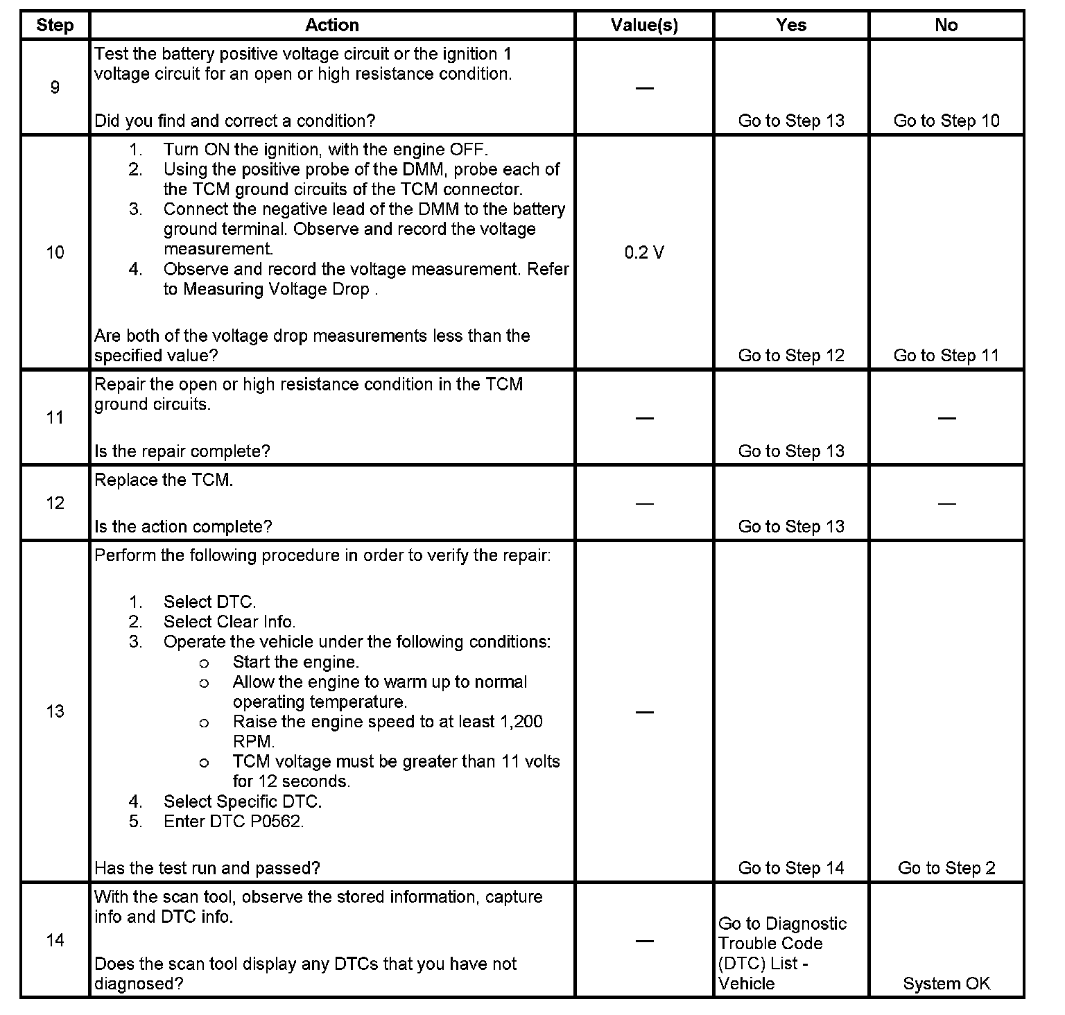 When the TCM detects low voltage, DTC P0562 sets. DTC P0562 is a type C DTC.