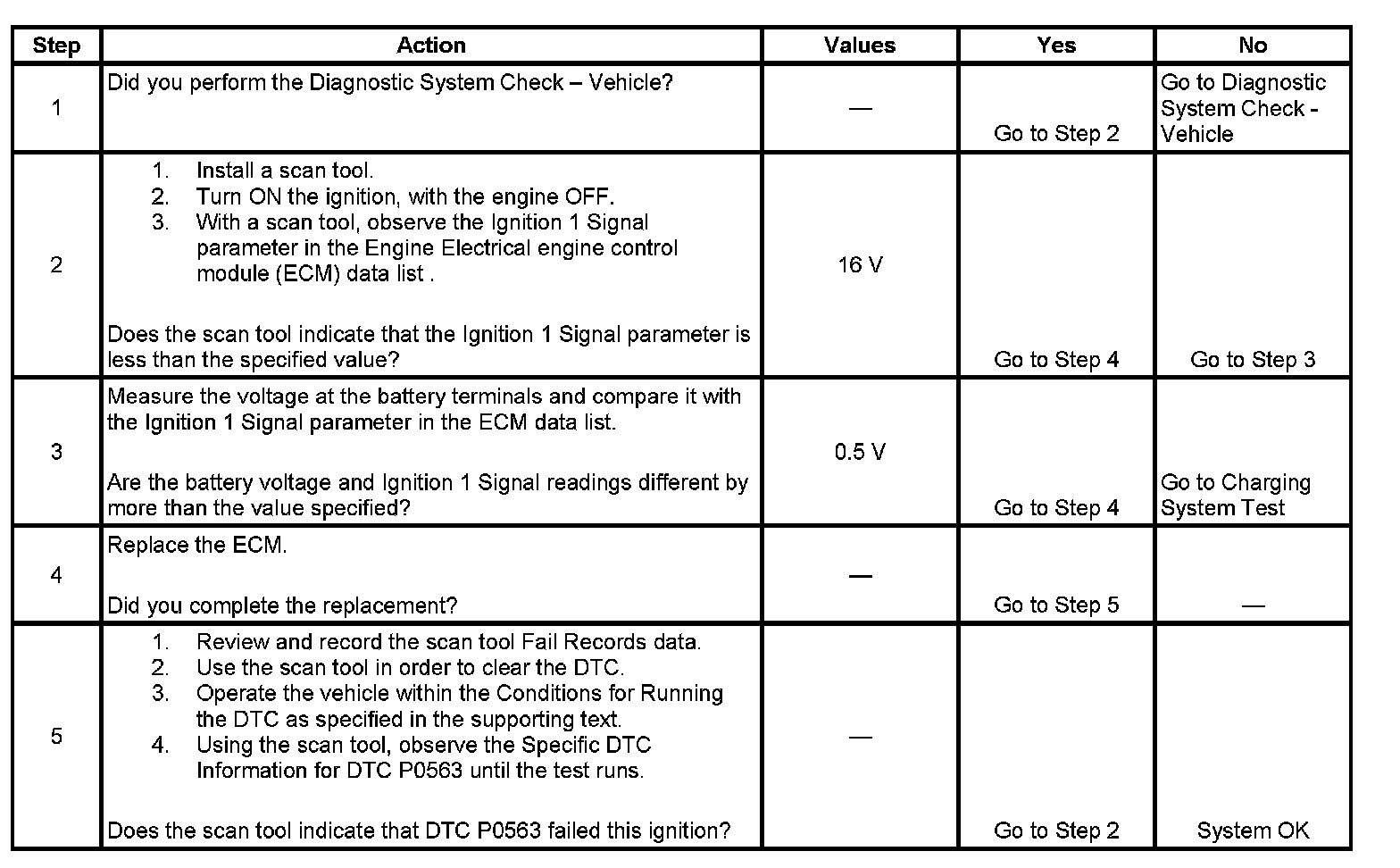 The engine control module (ECM) monitors the system voltage to ensure that the voltage stays within the proper range. Damage to components, and incorrect input can occur when the voltage is out of range. The ECM monitors the system voltage over an extended length of time. If the ECM detects an excessively high system voltage, DTC P0563 will set.