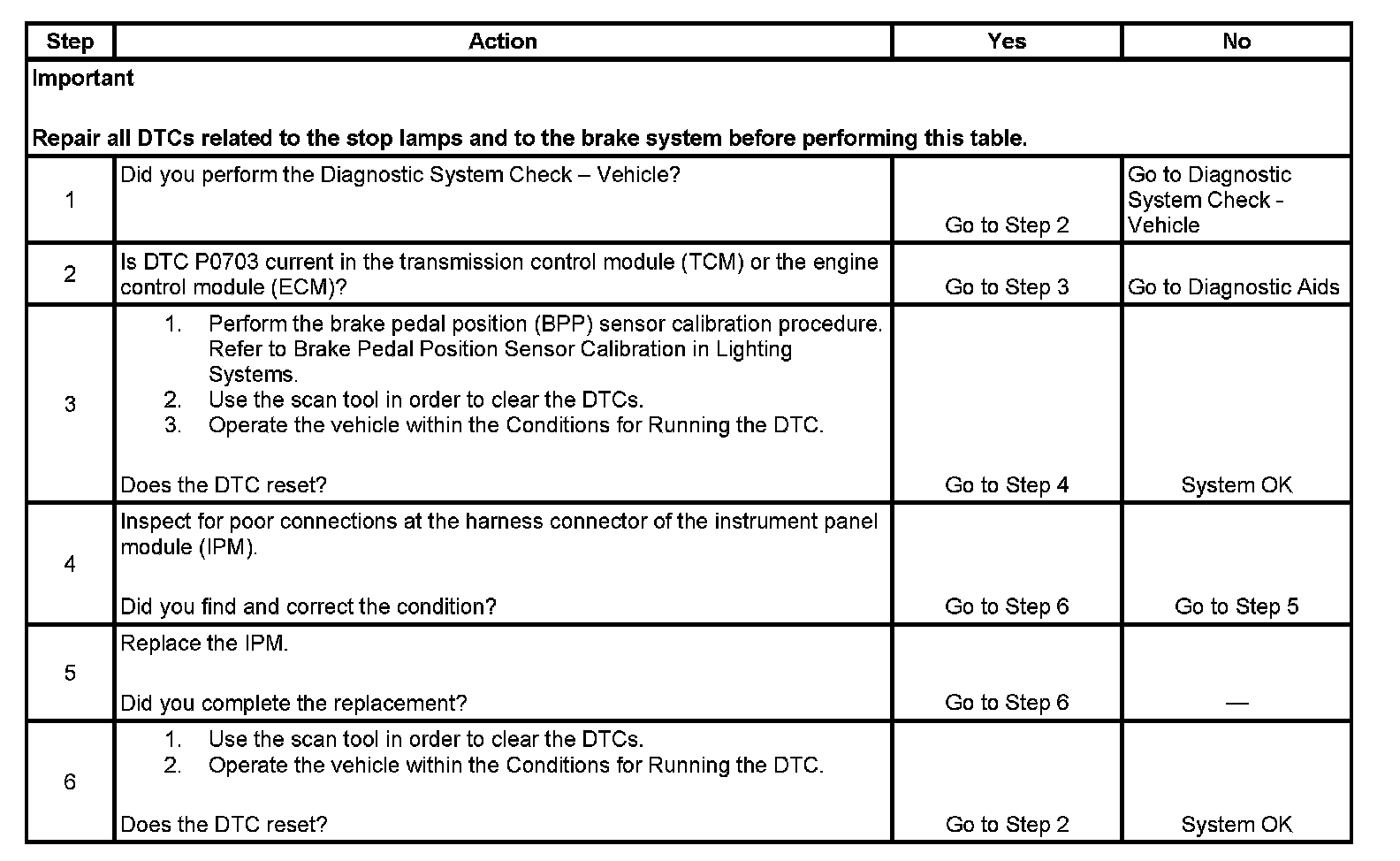 2. This step is performed in order to confirm that DTC P0703 is current within the TCM or the ECM.