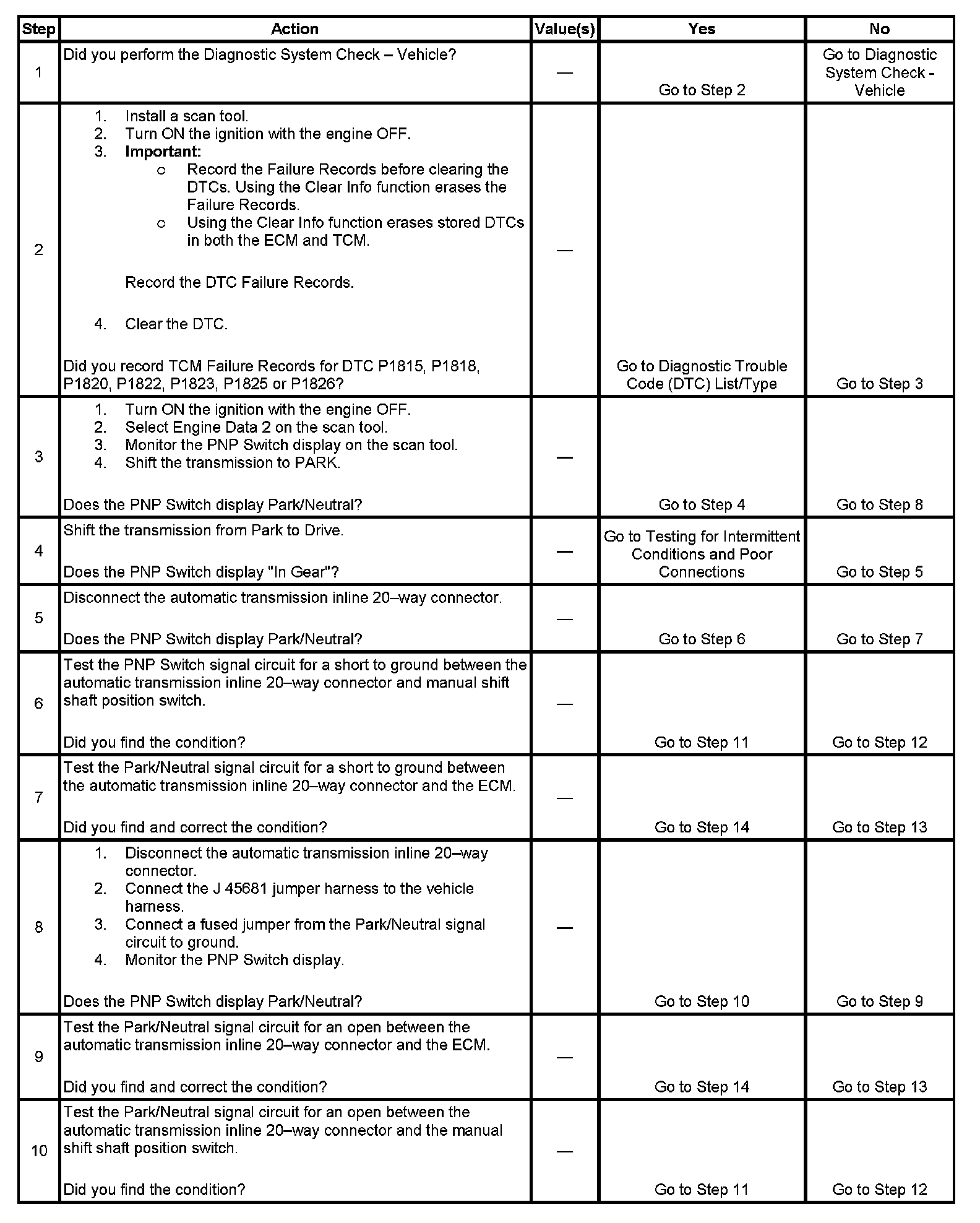 DTC P0850 Park/Neutral Position (PNP) Switch Circuit