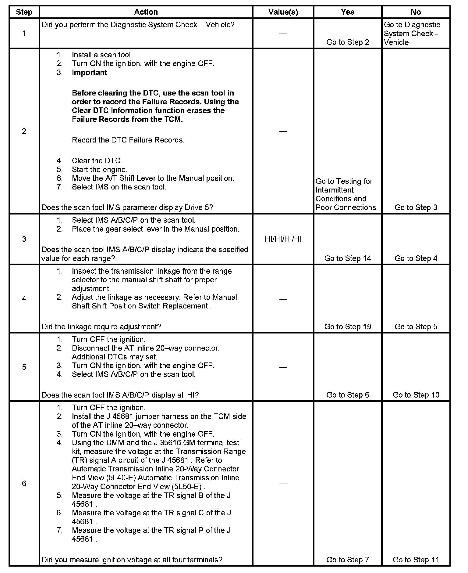 ^ No IMS range DTCs P1815, P1820, P1822, P1823, P1825 or P1826.