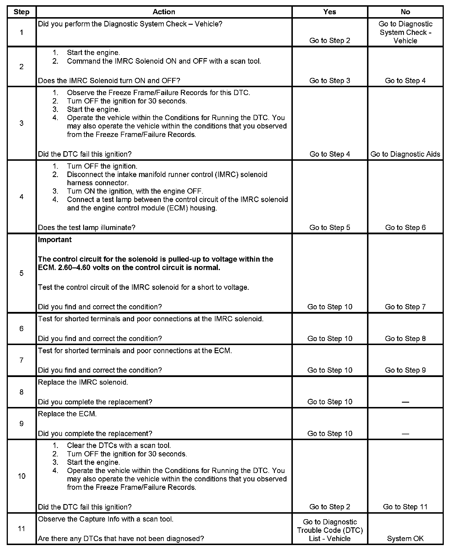 - The ECM detects the control circuit voltage for the IMRC solenoid is more than 4.6 volts when the driver is commanded ON.