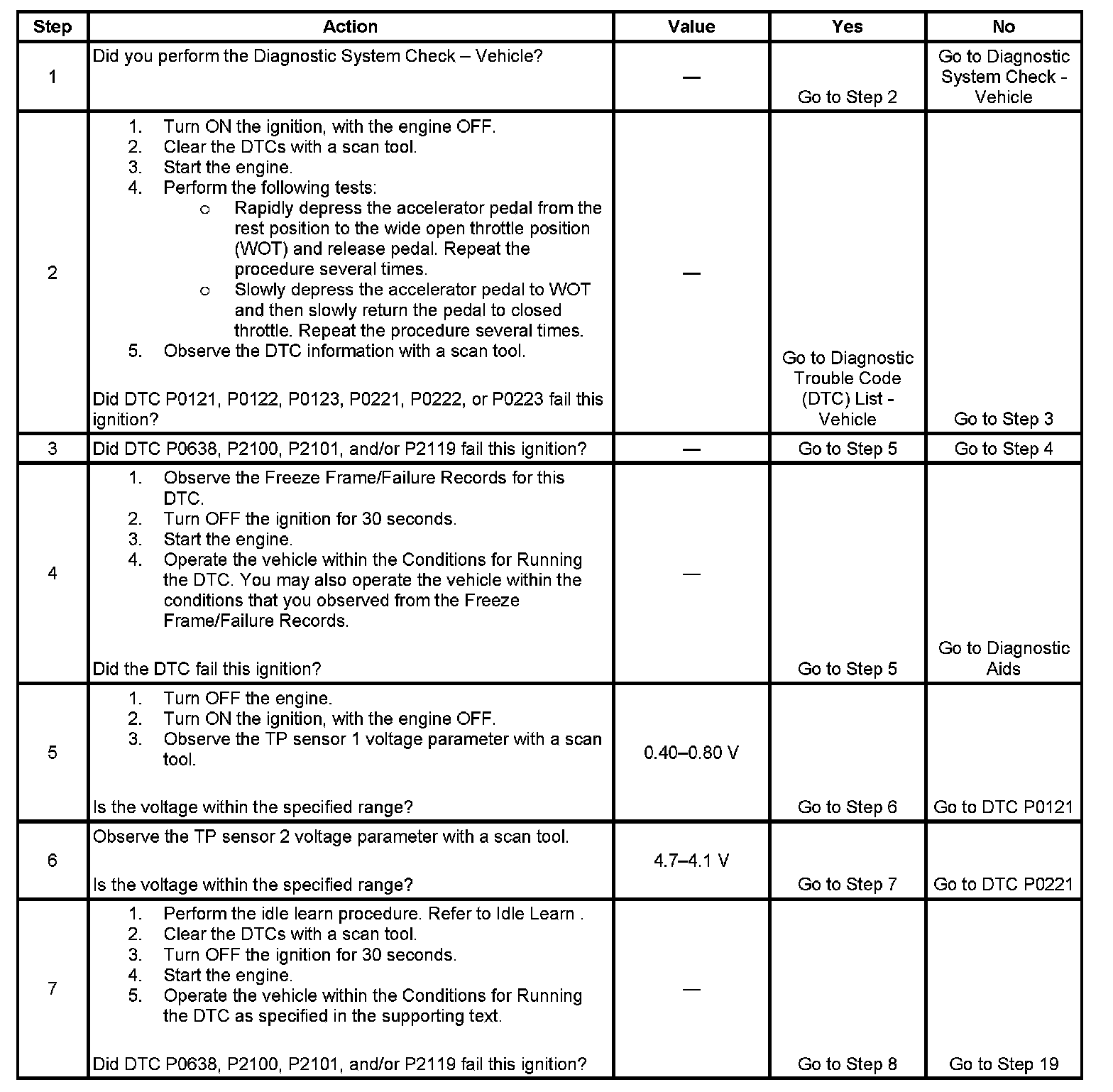 2. This step determines if the condition exists. A TP sensor DTC may cause this DTC to set.