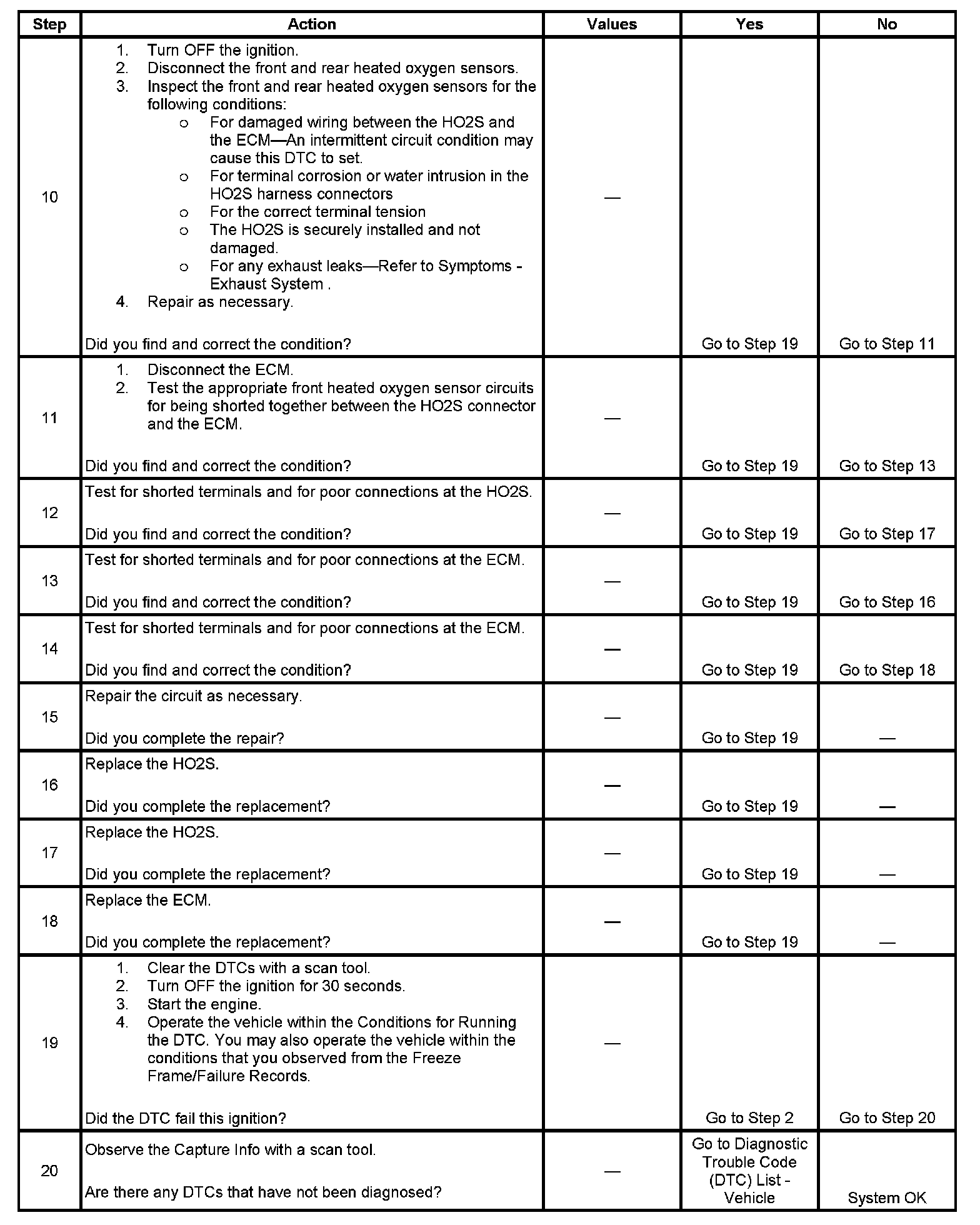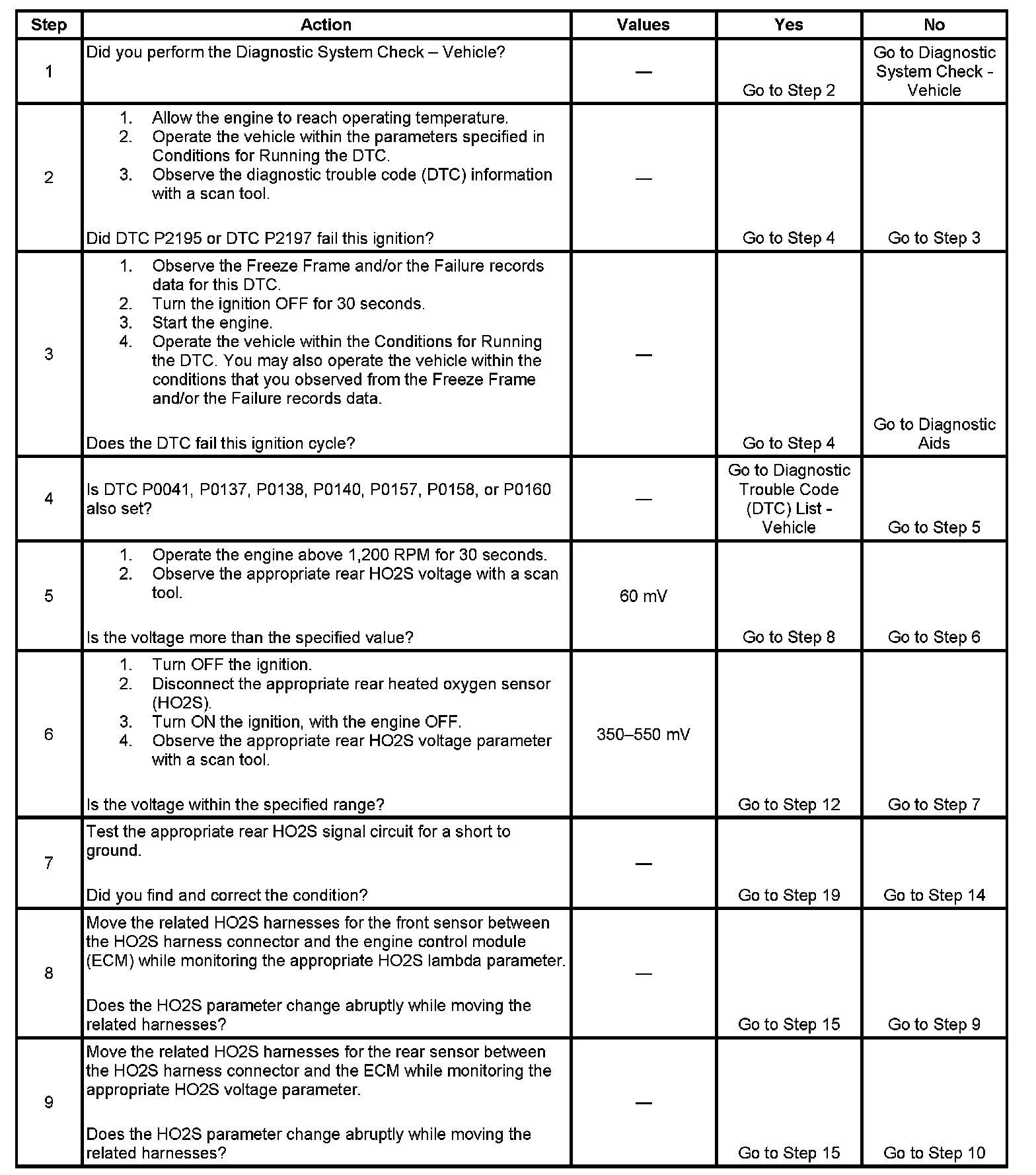 9. This step is testing for an intermittent circuit condition. Thoroughly inspect the HO2S circuits for an intermittent circuit condition. DTC P2195 or P2197 HO2S Signal Biased Lean