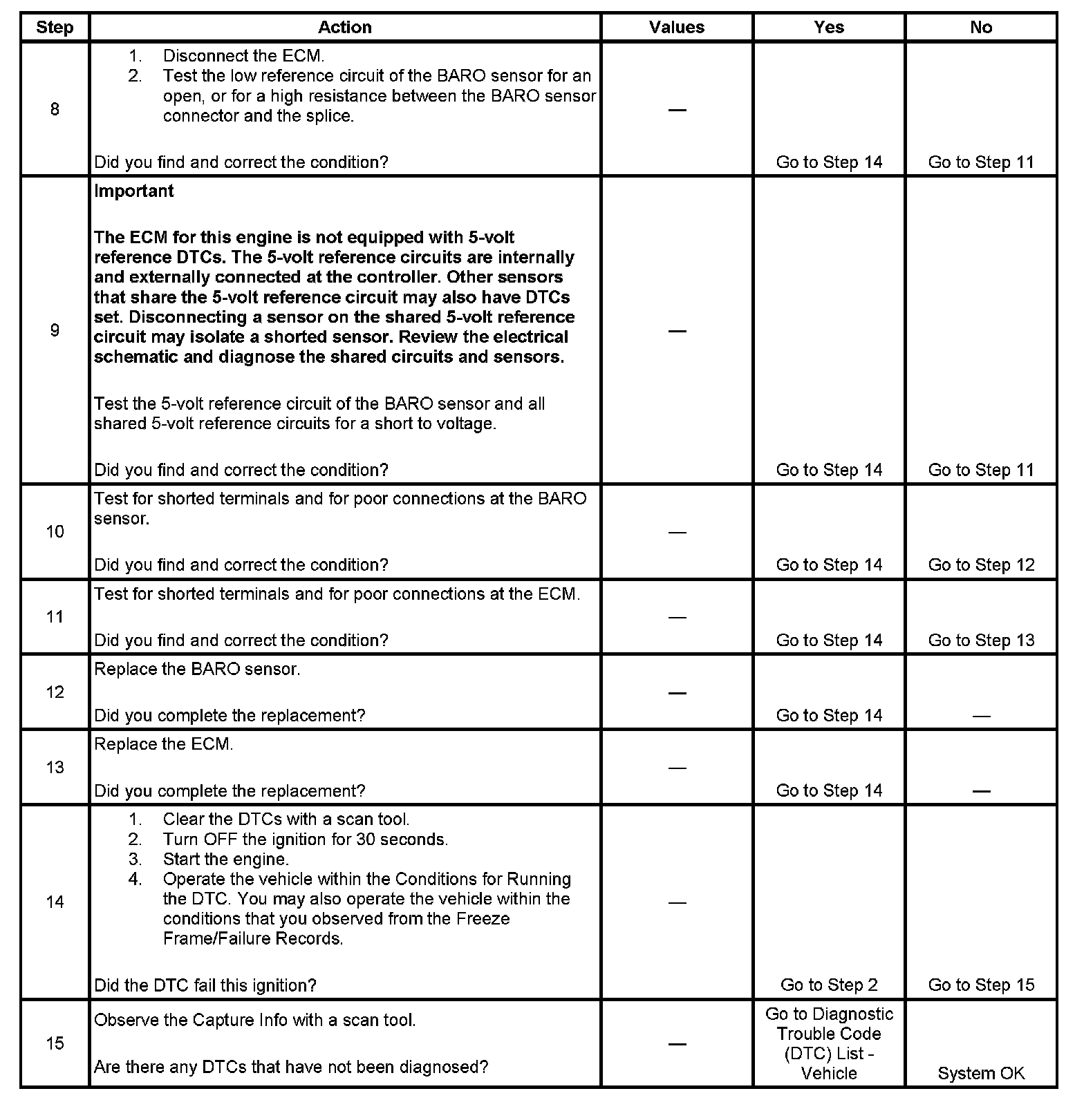 - The ECM detects that the BARO sensor voltage is more than 4.8 volts and the BARO pressure is more than 115 kPa.